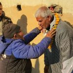 सहिद सपनशिलाका बुबा जब्बर सिंह घर्ती “सुमन”ले वलीलाई अविर र माला लगाईदिदै जितको अग्रिम शुभकामना दिएका छन ।
