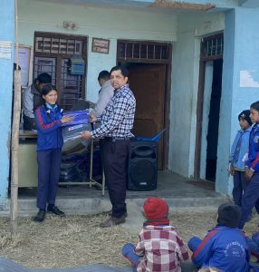 रोल्पा। नेपाल इन्भेष्टमेन्ट मेगा बैंक लिमिटेड शाखा कार्यालय जुगारले आफ्नो सामाजिक उत्तरदायित्व कार्यक्रम अन्तर्गत त्रिवेणी गाउँपालिका वडा नं. १ करेटीका ६ वटा विद्यालयमा अध्ययनरत ४० जना गरिब, विपन्न तथा जेहेन्दार विद्यार्थीहरूलाई ट्रयाकसुट र स्कुल झोला वितरण गरेको छ।